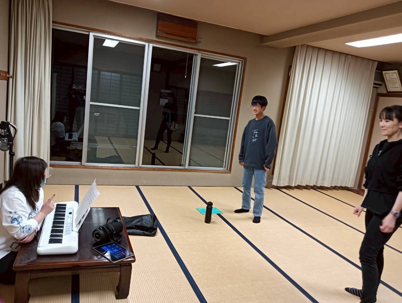 ボイストレーニングでは、歌詞の意味を考えた上での声の出し方、音程を正しくとる練習などを主に行いました。本番までの残り少ない稽古を、大切に、皆さんに笑顔を届けられるよう頑張ります!
